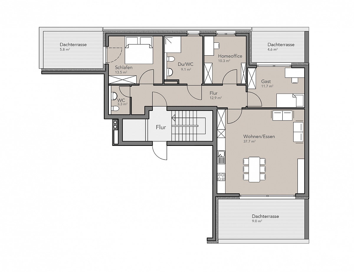 Alle Bilder sind exemplarisch und zeigen lediglich in der Baubeschreibung genannte Produkte. Innenarchitektonische Ausführungen können abweichen.  © Villeroy & Boch